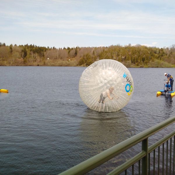 We also offer water zorbing, which essentially allows an individual to “walk” on water while encased in a giant inflated bubble (a.k.a. zorb ball, hamster ball).