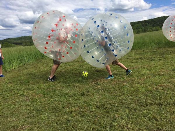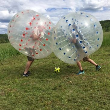 Bubble soccer (a.k.a. bubble ball, bumper ball, zorb soccer, etc.) is a unique game, based on the sport of soccer, with the added twist that players are encased in large bubbles (also known as zorb balls) with only their legs free to run around and kick the ball.